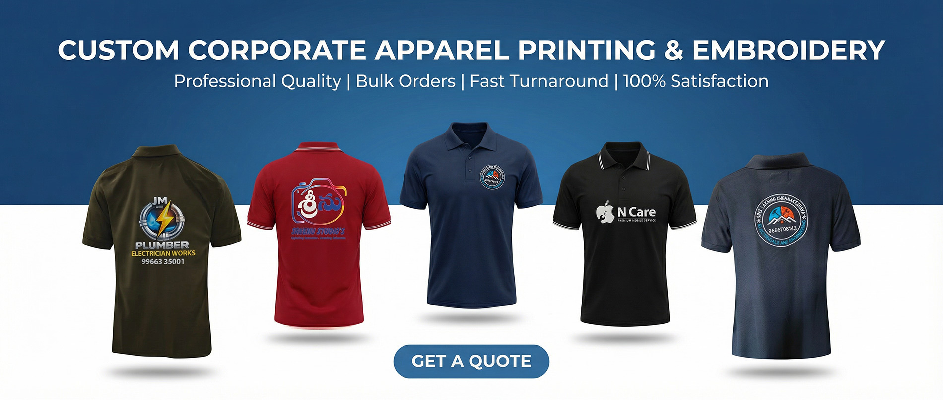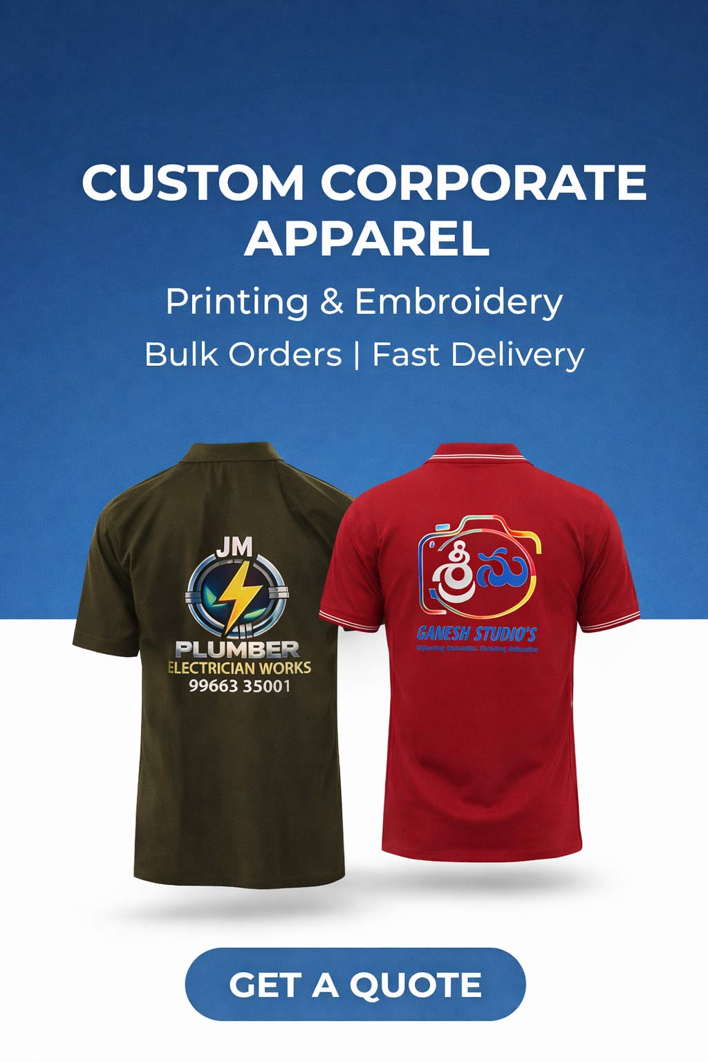 At OnDuty T Shirt, we specialize in custom t shirts designed exclusively for corporates, service-based businesses, startups, and institutions. Whether you need branded uniforms, promotional tees, or event merchandise, we deliver professional-grade t shirt printing with logo that enhances your brand visibility.